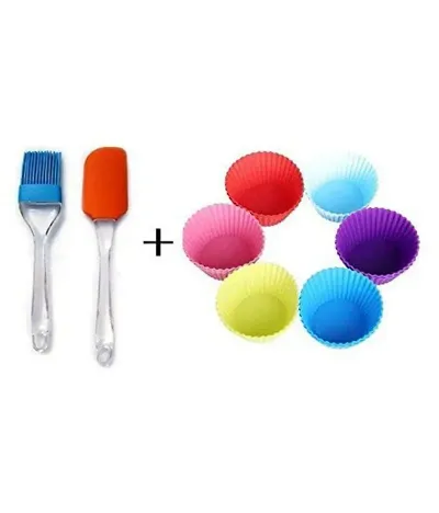 Combo Set Of 6 Silicone Muffin Moulds with Silicone Spatula Pastry Brush Set