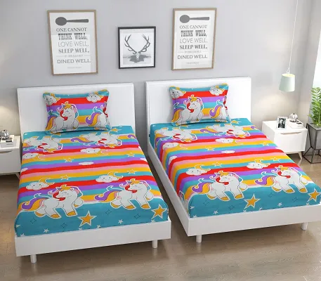 Comfortable Cotton 3D Printed Two Single Bedsheets With Two Pillow Covers