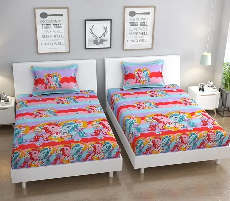 Comfortable Cotton 3D Printed Two Single Bedsheets With Two Pillow Covers